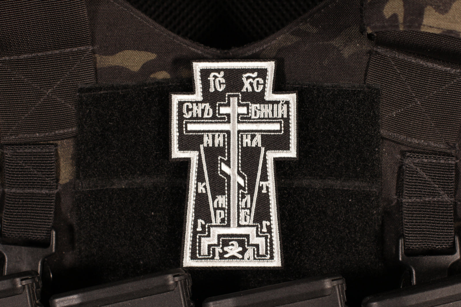 Russian Orthodox Cross Patch Black & White
